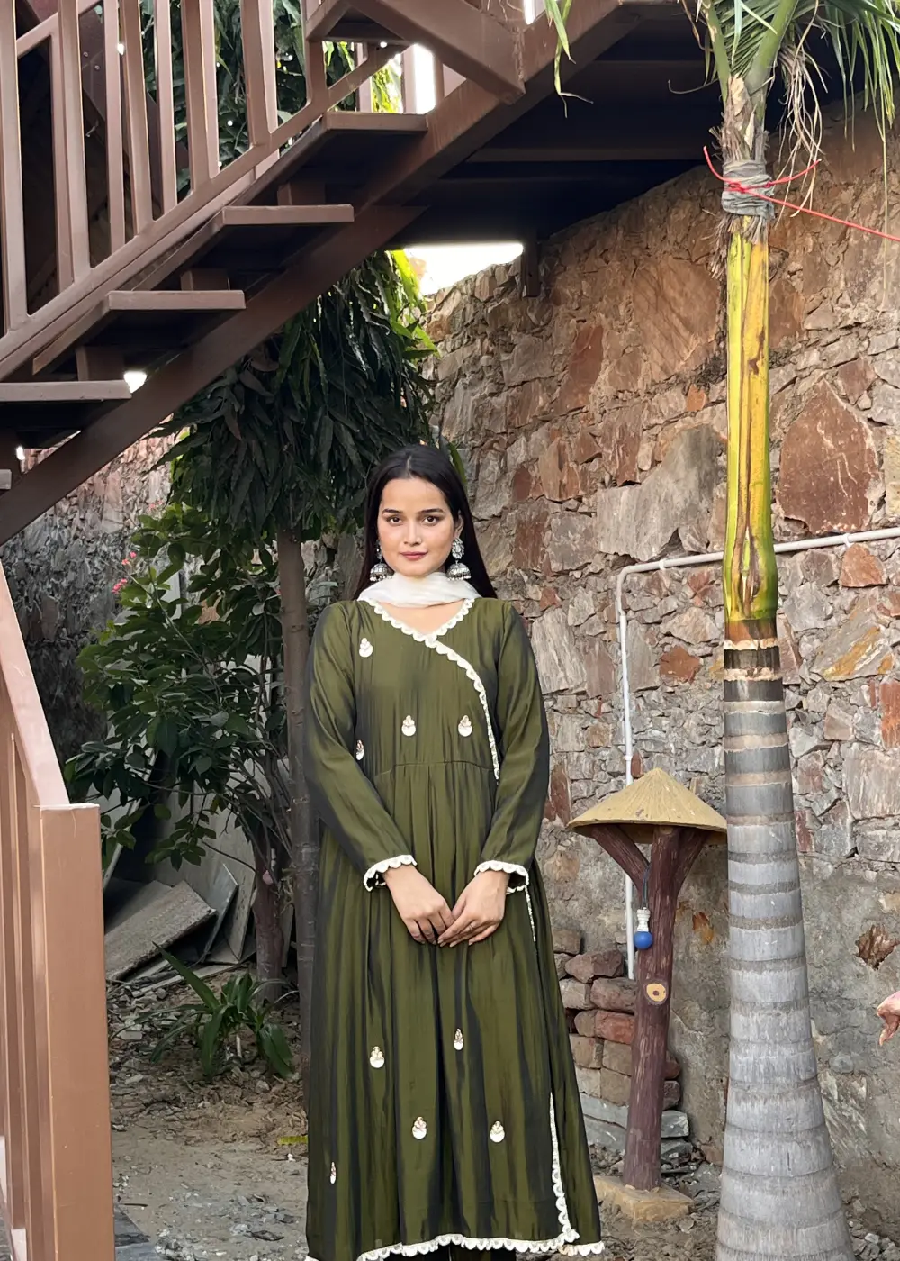 Step into elegance with this stunning Anarkali-pattern Chinon Silk suit in a rich Mehandi Green shade. The luxurious Chinon silk fabric drapes beautifully, creating a flattering silhouette with its graceful flow. The intricate beadwork on the kurta adds a touch of sparkle and sophistication, elevating the overall design. Paired with a soft georgette dupatta, this ensemble offers an effortless blend of comfort and style. Perfect for weddings, festive occasions, or any special celebration, this suit promises to make you the center of attention with its timeless beauty and intricate craftsmanship.